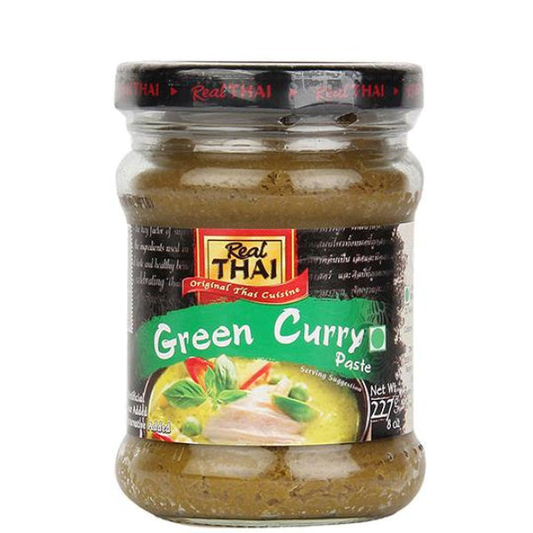 Real Thai Green Curry Paste (227 g) is fragrant and mildly spicy, ideal for authentic Thai green curries and stir-fries.